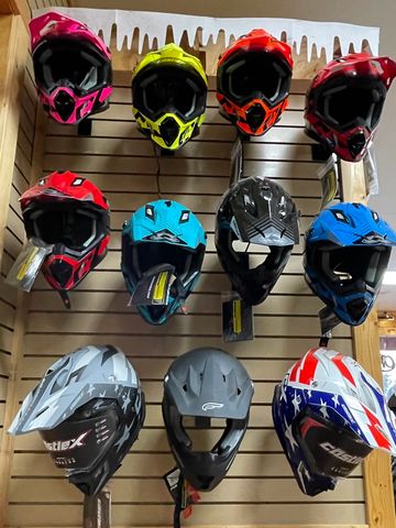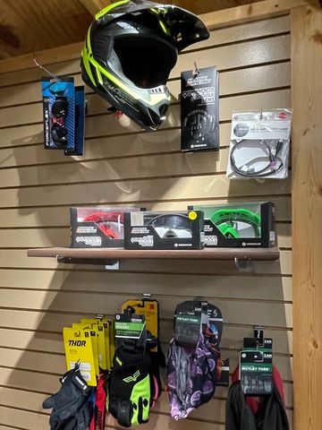 We keep a wide variety of oil / Lubricants, Filters, Batteries (Interstate & BS Battery), Tires, Spark Plugs, Belts (ATV, Snow & Lawn) and Lawn Blades in stock. As well as a great selection of Apparel, Helmets and Accessories.